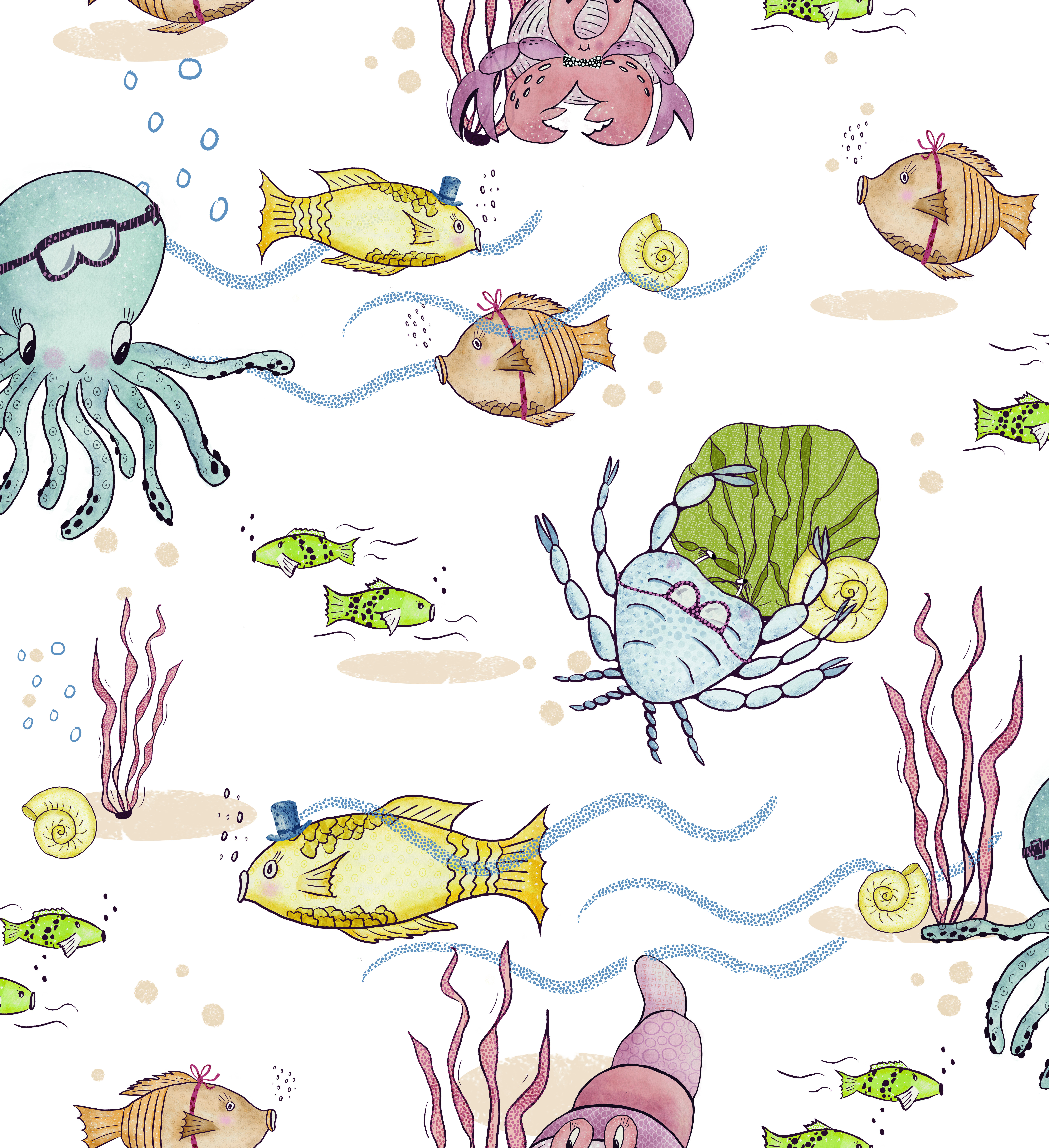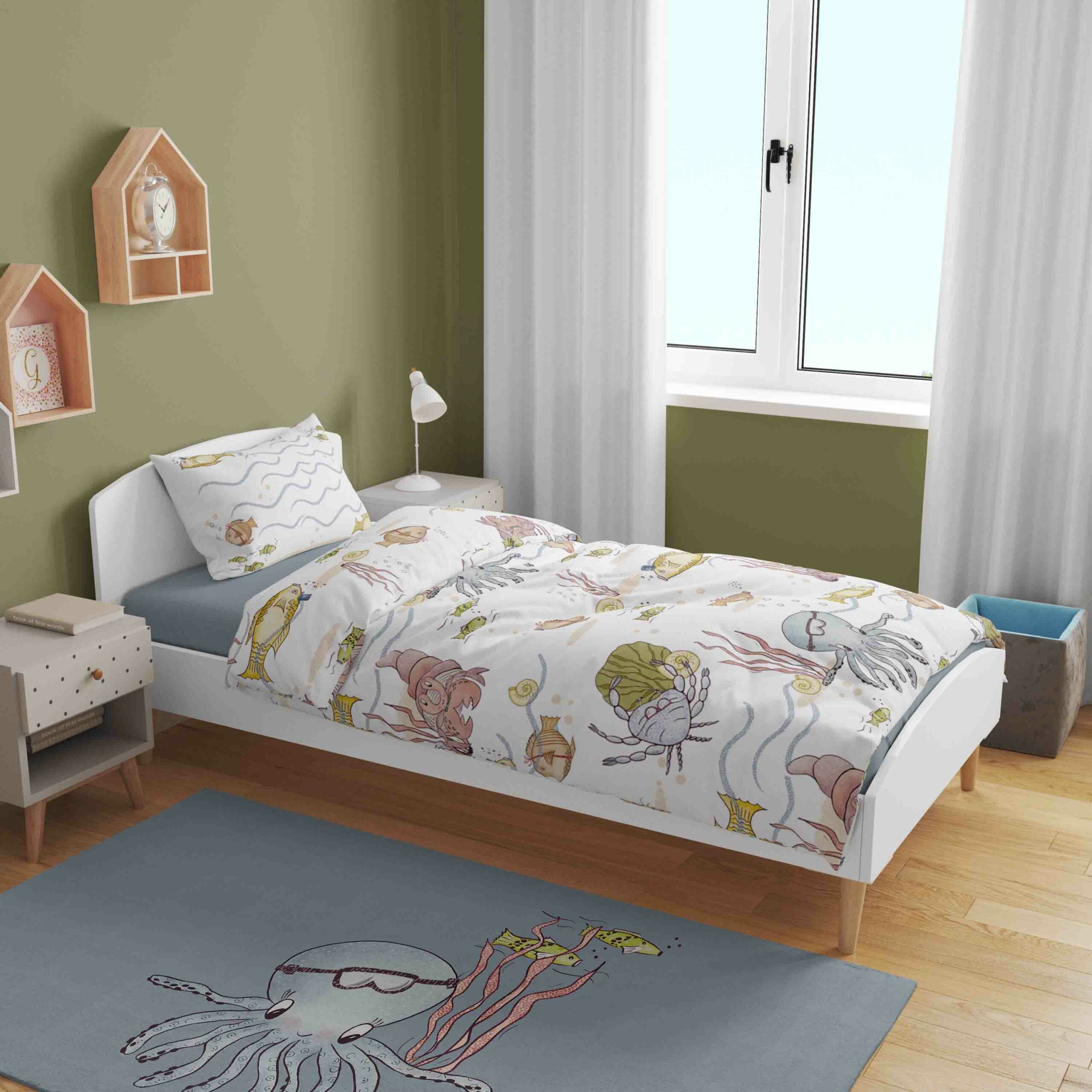 Niks is magischer dan de dieren, die leven in de zee. In dit ontwerp worden de dieren in prachtige fantasie de kinderkamer ingetrokken.